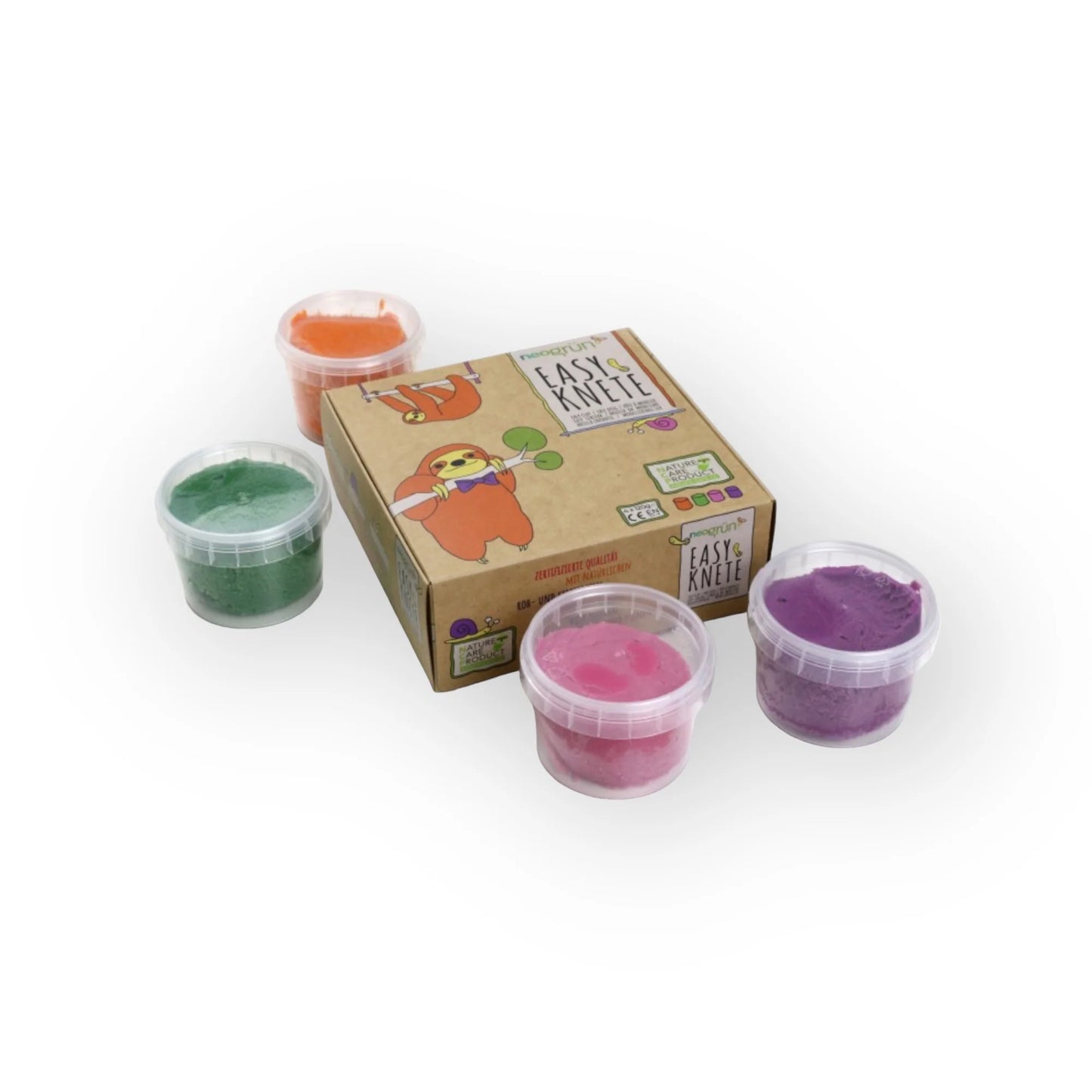 - Le coffret "Couleur Nature" est composé de 4 pots de pâte à modeler (120g) de couleur orange, rose, vert et violet..